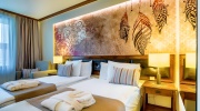 The warm and cozy atmosphere, the bright environment and the scent of the tree are the hallmarks of our rooms, where you will feel comfortable and at home. The shapes and colors correspond to the elements of nature, dictating the style and the feeling of coziness and uniqueness. Furnished and equipped with attention to the smallest detail! The interior of our double rooms is an ideal combination of elegant luxury, maximum functionality and sense of coziness.
